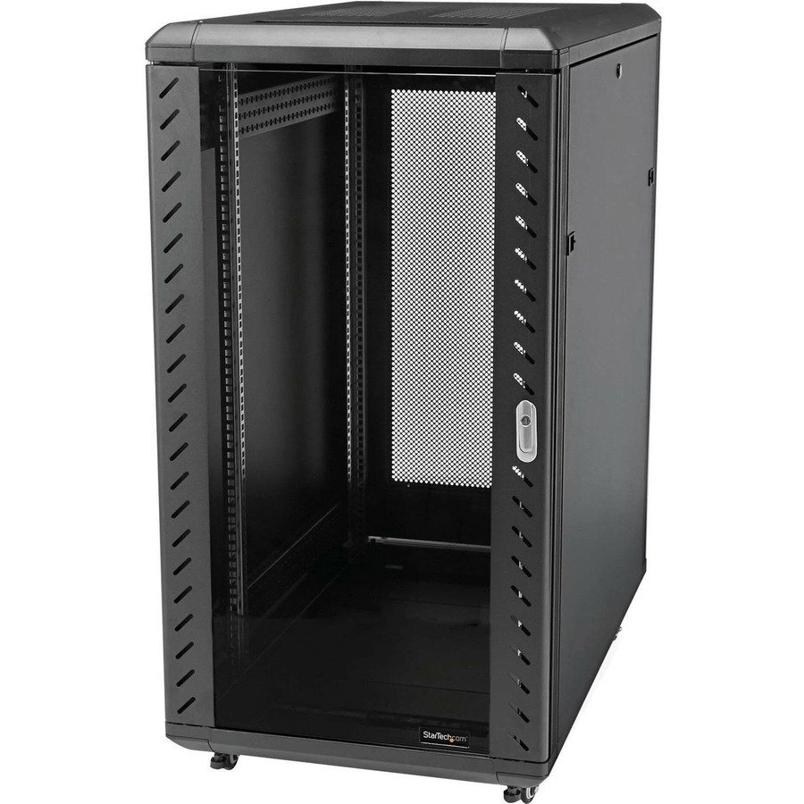 StarTech.com 18U 19″ Server Rack Cabinet – 4 Post Adjustable Depth (6-32″) Locking Knock Down Enclosure – Mobile w/Glass Door & Casters