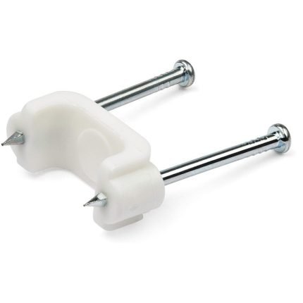 Large nail in cable clips with internal dimensions of 18.7 mm x 8.0 mm (0.74 in x 0.31 in) - Easily install/remove/reuse w/ included steel nails - Secure cables to baseboards/wood/drywall/brick for an uncluttered look - 100 pack white plastic clips